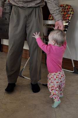 Look who is on the move! This is one first that I’m ambivalent about. It is fun to see her happy face when she accomplishes her goal, but a walking baby is a dangerous baby. From this moment on, our little girl will be independent, which means that she will be getting into things. Bye-bye books on low shelves. No more cups left on the coffee-table. Time to lock up the cupboards.