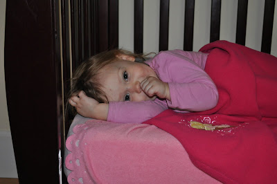 She loves having us climb into her “big bed” with her – Okay, so it is really still her crib with the side off (I can’t fathom spending money on a toddler bed that gets used for only a few months) but it works just the same.